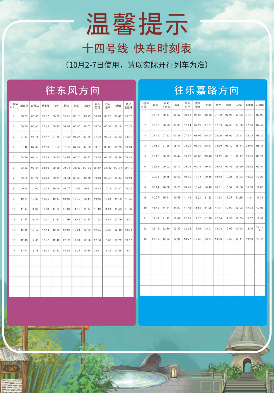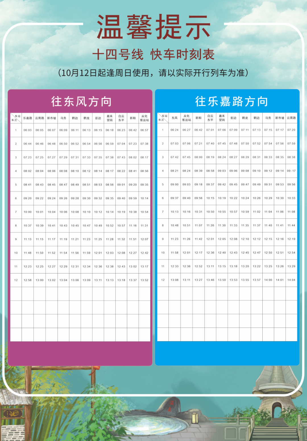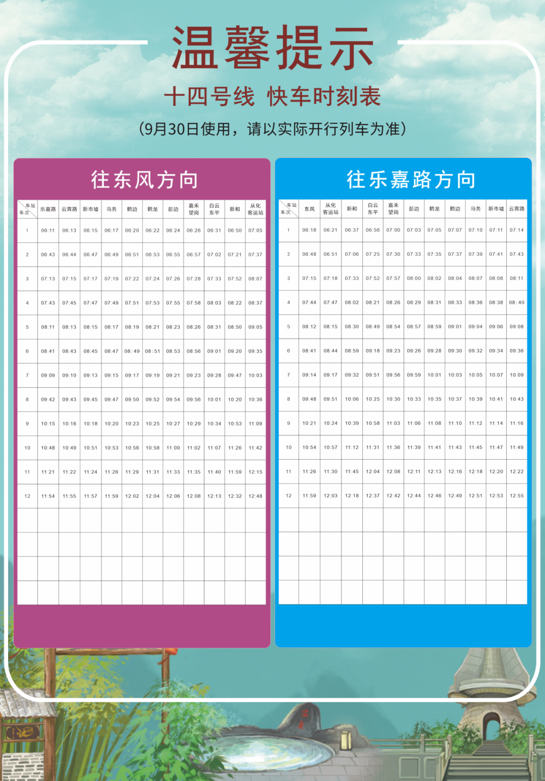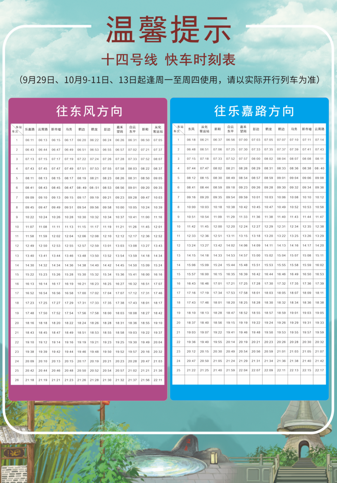 根据交通组织调整等情况,为做好地铁十四号线二期开通后的公交接驳,经研究,决定对相关公交站点和线路进行优化调整,从9月29日起实施;常规公交站点和线路调整从10月11日起首班车起实施。现将有关事项告示如下: