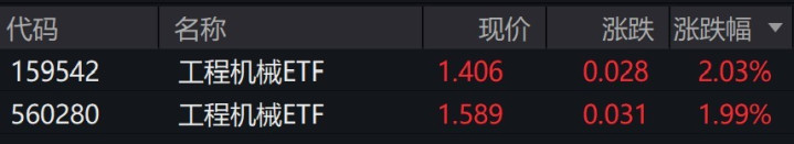 受盘面影响,工程机械ETF涨约2%。