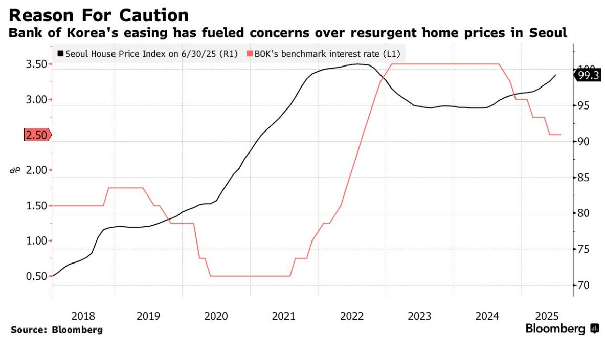 这一决定反映出韩国央行希望保持货币政策宽松,同时对首尔公寓价格飙升和美国贸易政策不确定性引发的金融失衡保持警惕。